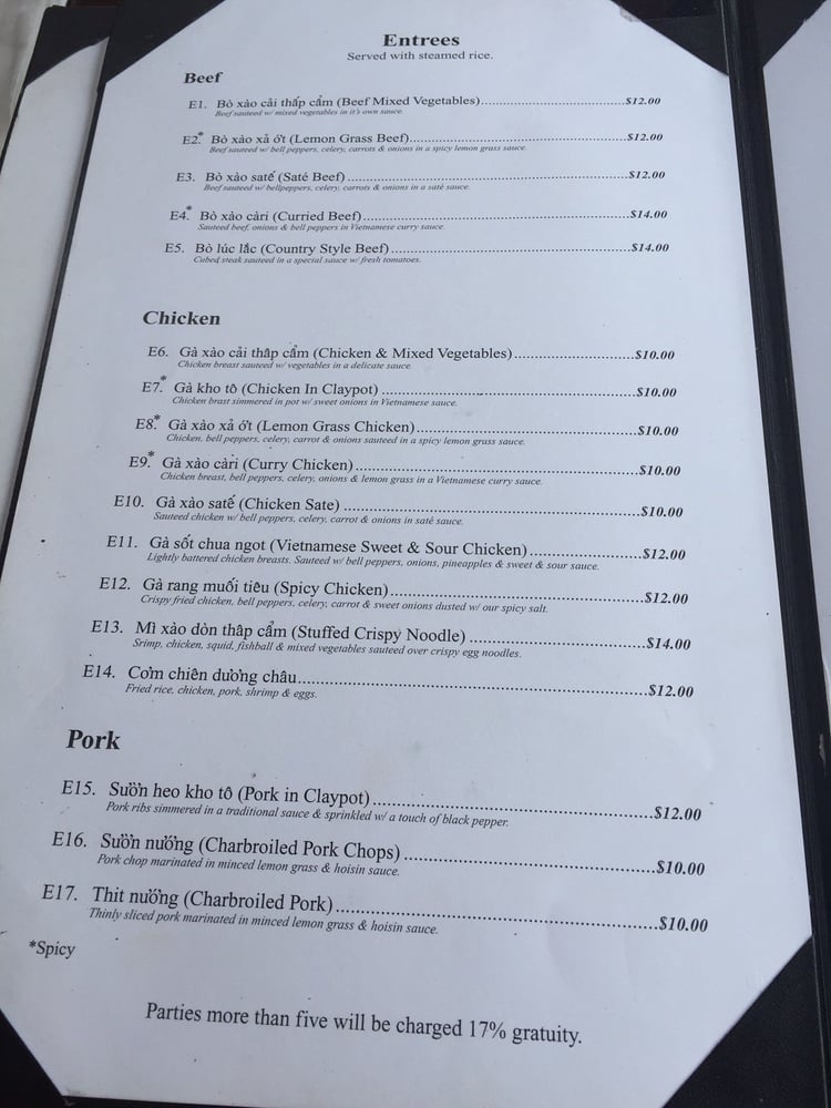 Vietnamese favorites. Thinly sliced beef brisket. Served with hot and spicy soup with rice noodles.